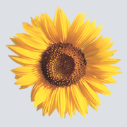 Sonniger Sonnenblumenblüte mit leuchtend gelben Blütenblättern und dunklem Zentrum.